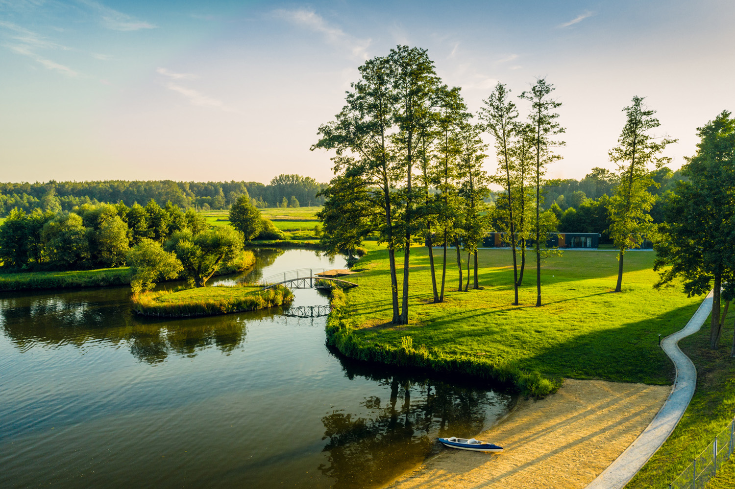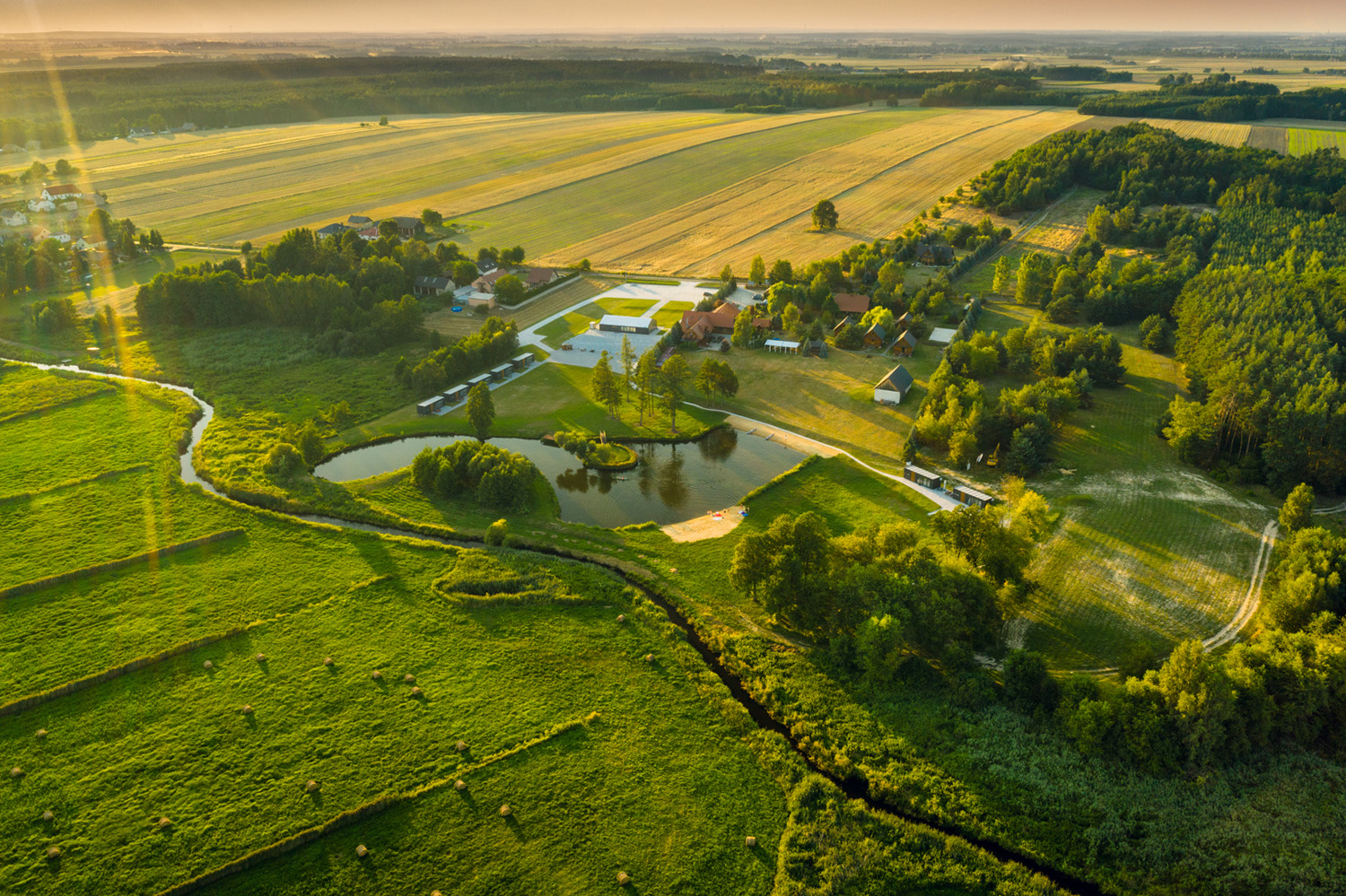 • 4 drewniane domki 10 osobowe z poddaszem użytkowym, tarasami i balkonami,